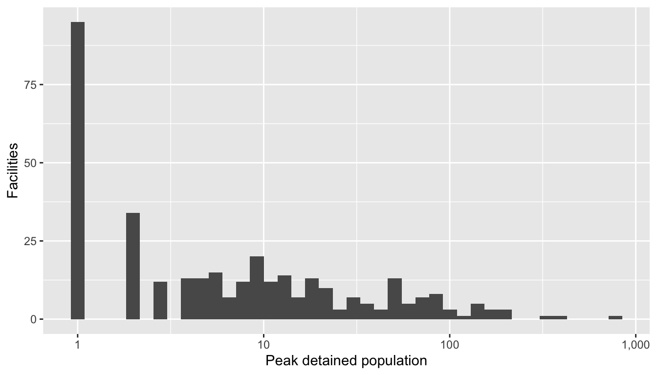 | Facility | City | State | Type | Peak pop. | Peak date | Mean ADP |