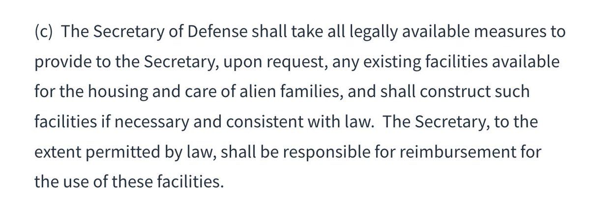 Trump Executive Order authorizes the military to build new prisons for migrants and their families, to be run by the Department of Homeland Security.