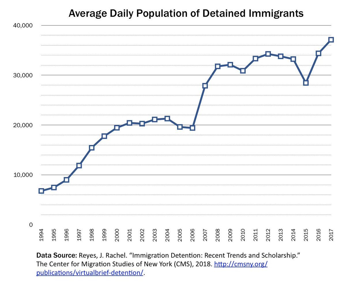 The long, steady rise of the immigration detention machine in the United States. #AbolishICE #NoFamilySeparation #NoFamilyDetention #PapersForAll