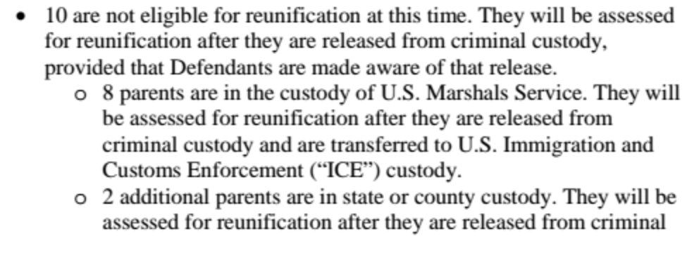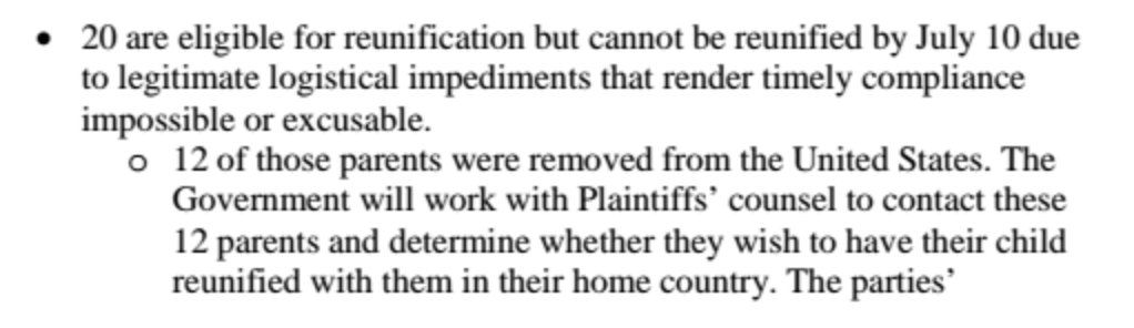 Twelve parents have been deported, and eight have been released into the United States. They don't have their kids yet.