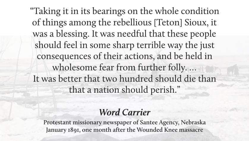 Some Protestant missionaries who received the wounded saw the massacre of hundreds as a chastening punishment that would redeem the Lakota from heathenism and rebellion.