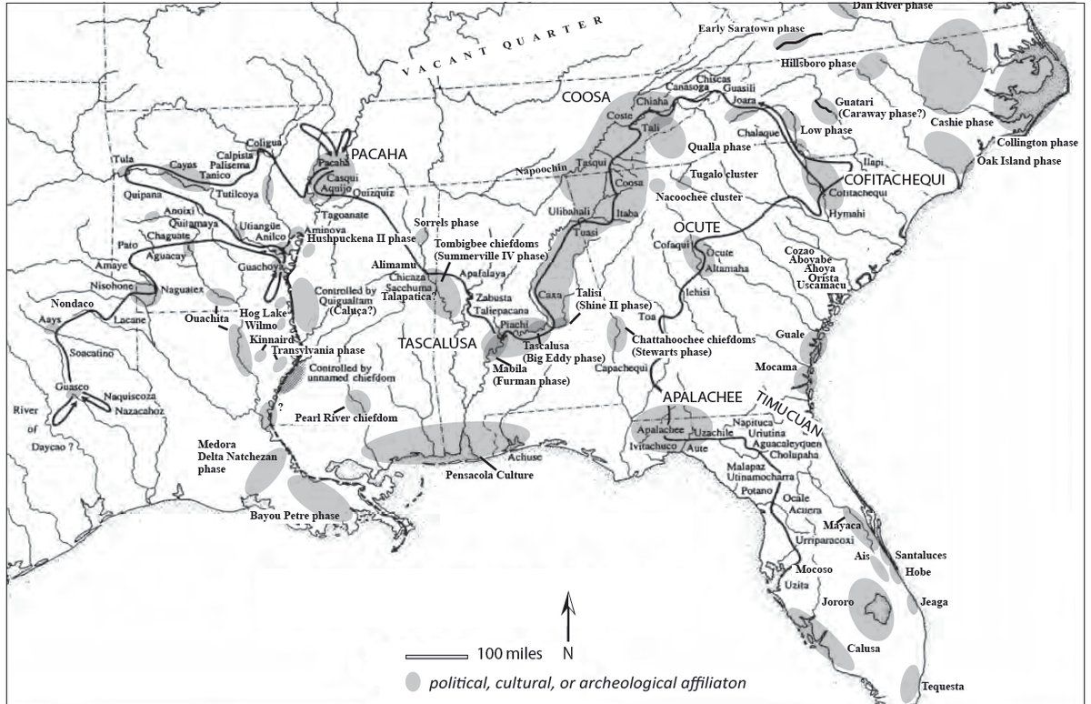 Apropos of Chris Rodning's talk, here is Robbie Ethridge's map of cultures and communities of the American southeast around 1540. (In _From Chicaza to Chickasaw_)