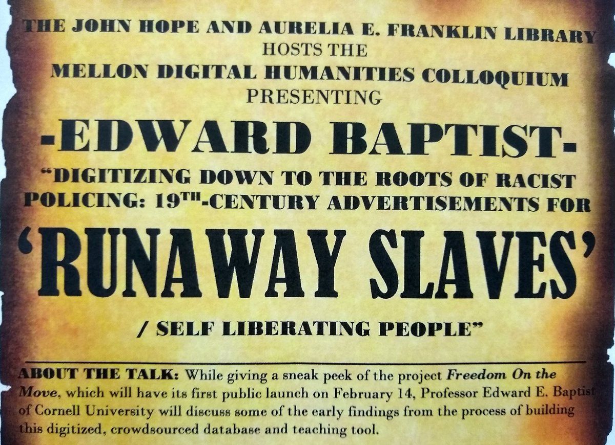 I'm at Fisk University to see Edward Baptist talk about his work digitizing records of runaway slaves.