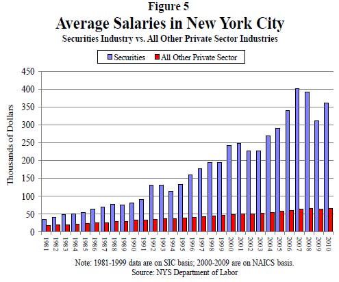 Wall Street workers have seen their salaries take off, leaving other workers behind, even in NYC and other financial centers.