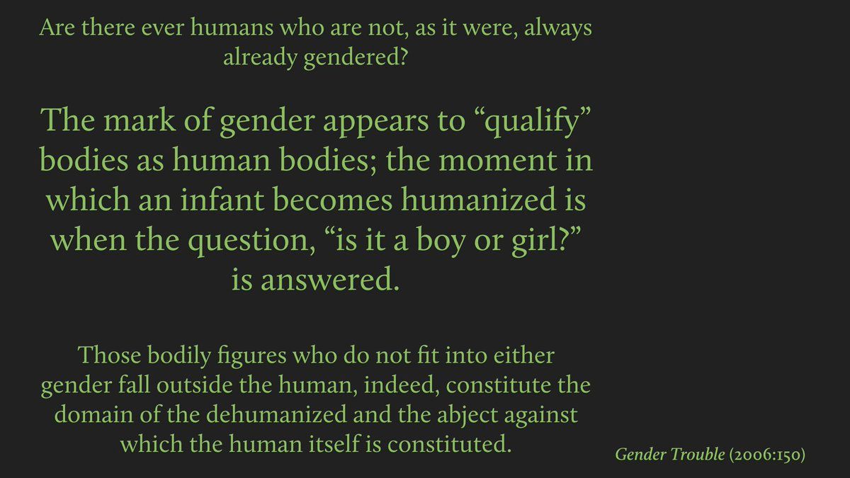 1. I might have had a little too much fun making lecture visuals on Judith Butler's Gender Trouble… #proflife #anthrotwitter #sorrynotsorry #gender #performativity #queertheory