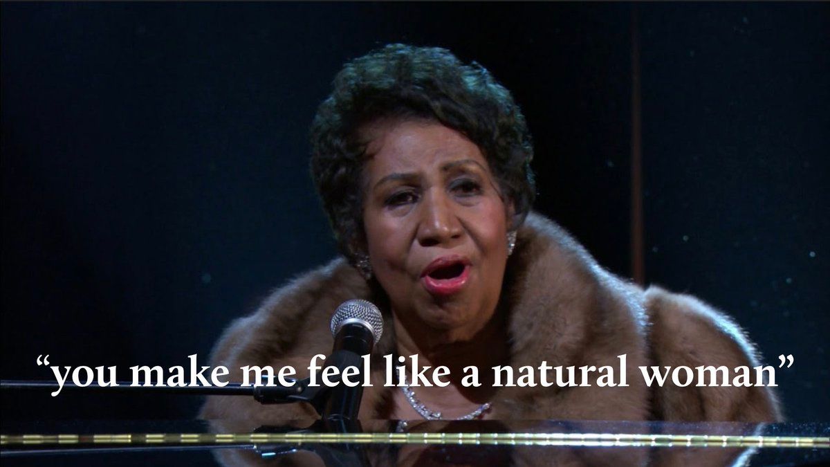 including showing this incredible video of Aretha Franklin's "(You make me feel like a) Natural Woman" youtube.com/watch?v=w8wOvR8mC9Q #gender #performativity #queertheory