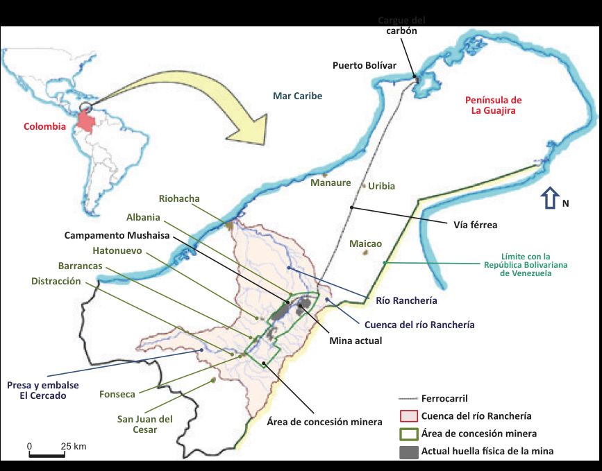 The mine is located in NE Colombia, on the territory of indigenous Wayúu people and Afro-descendant Colombians.