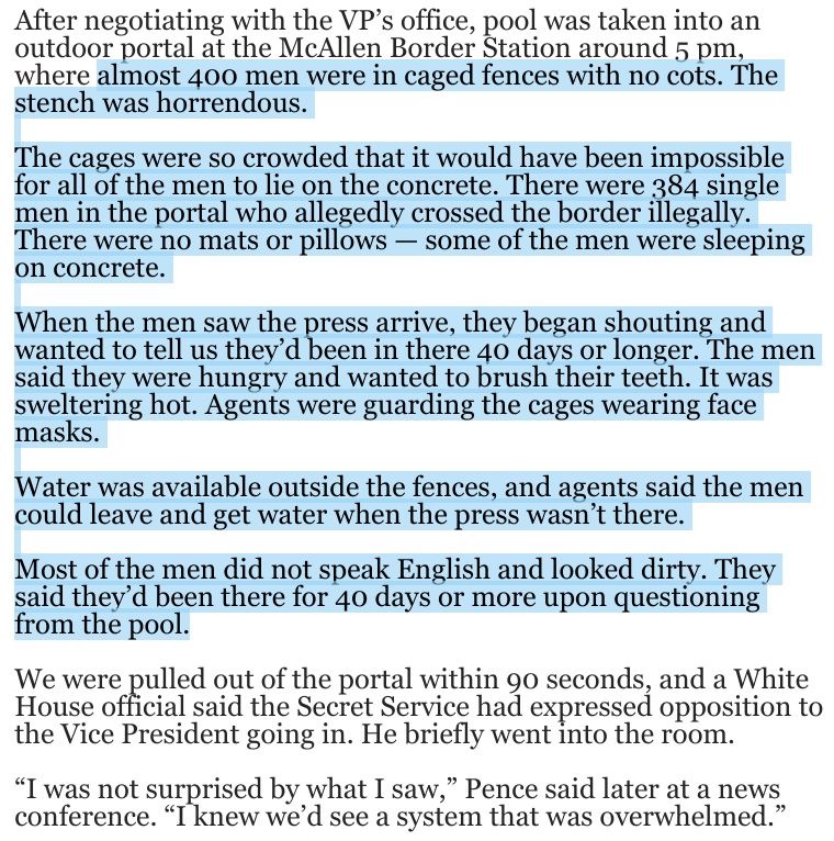 : Incredible, shocking stuff from the pool report on VP's border trip:
