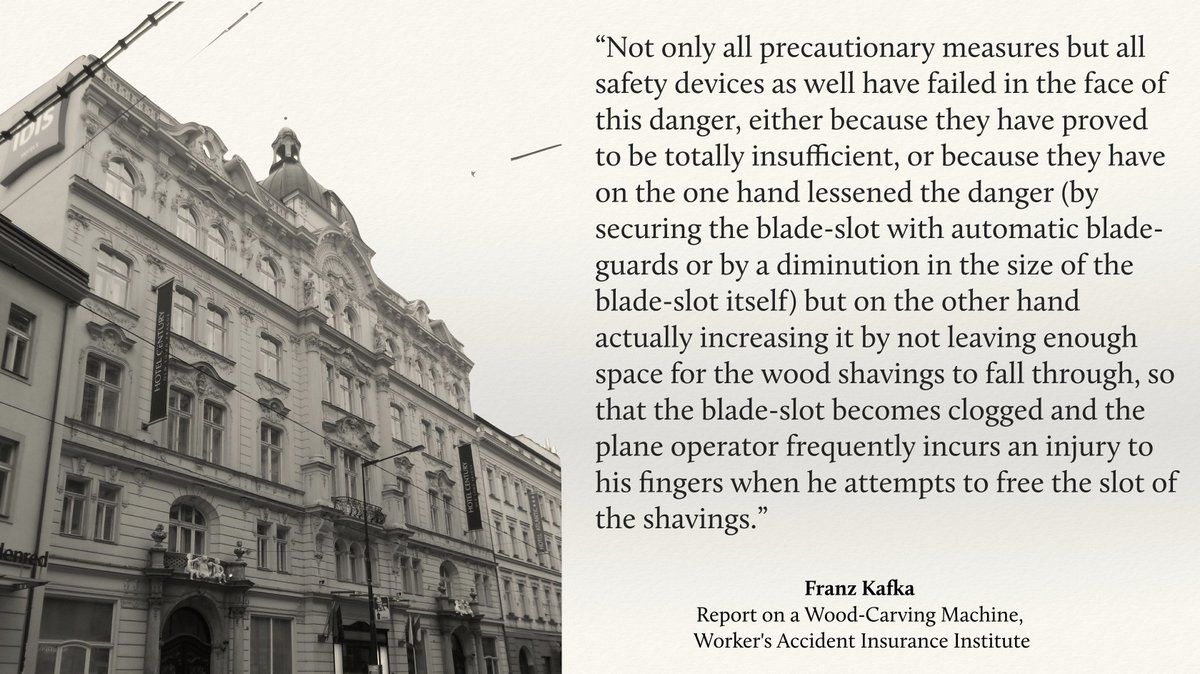 One of Franz Kafka's day jobs was at the Workers' Accident Insurance Institute. This nonfiction report on industrial machinery is as kafkaesque as his fiction… #Teaching #Kafka