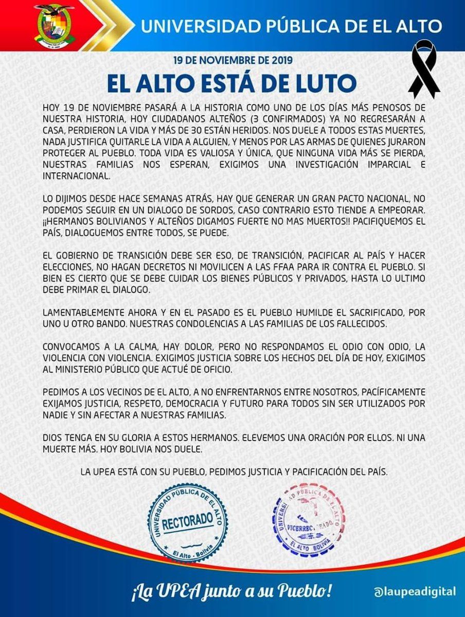 : La #UPEA se manifiesta ante lo sucedido en #Senkata cc #ElAlto