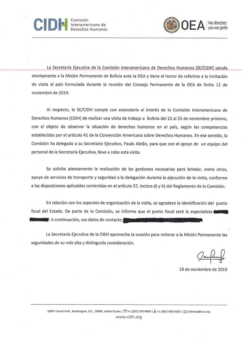 : 🔴CIDH envió a #Bolivia una comunicación formal para una visita inmediata.