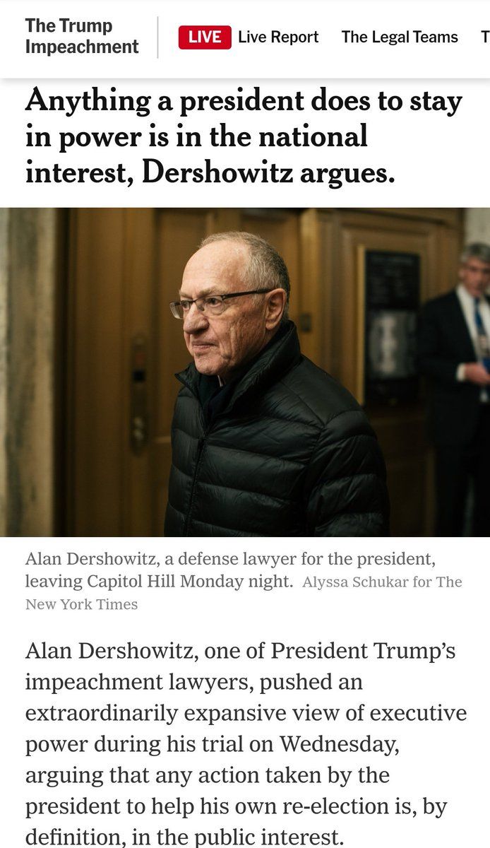 Law as a mask for power. #ImpeachmentTrial #Dershowitz