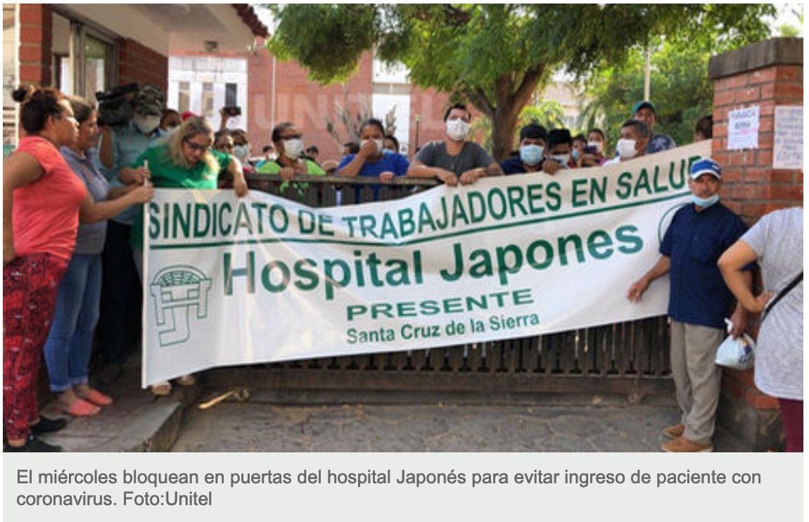 National health ministry warns doctors, who have blockaded their own hospitals against COVID patients, of their professional and legal obligations to provide care. la-razon.com/sociedad/coronavirus-Santa-Cruz-sospechosos-despidos-bolivia_0_3329067122.html