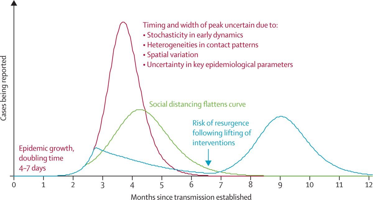 Instead their goal is the blue pathway… suppressing the epidemic now, with a possible lower curve far in the future when limits are lifted. Chart from "How will country-based mitigation measures influence the course of the COVID-19 epidemic?" thelancet.com/journals/lancet/article/PIIS0140-6736(20)30567-5/fulltext
