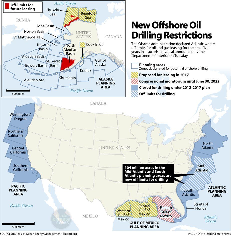 Obama administration authorized drilling in the Gulf of Mexico and the Arctic Ocean.
