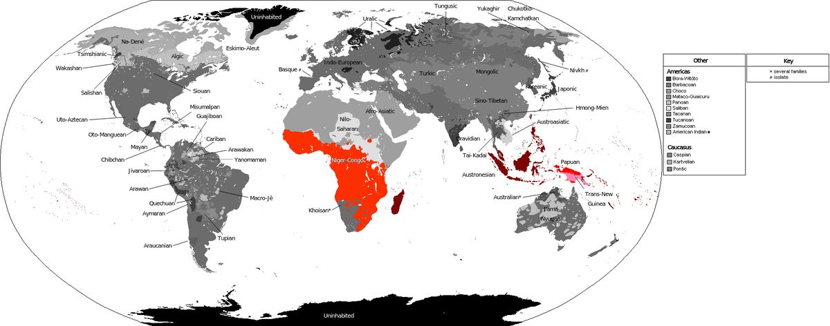 language families Austronesian 1,246 languages Niger-Congo 1,495 Trans-New Guinea 561 counts from Ethnologue 2005 + other Papuan ~200