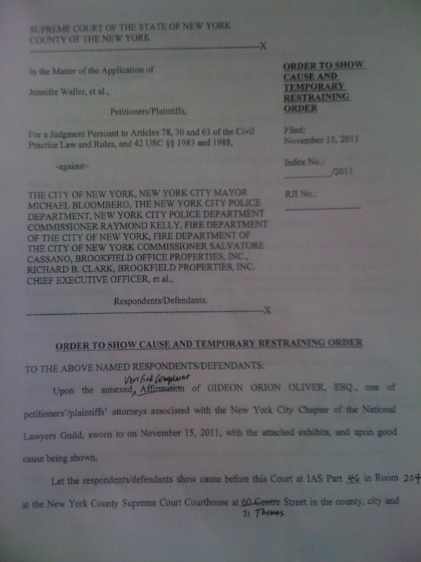 : The NY State Supreme Court order to show cause and temporary restraining order: