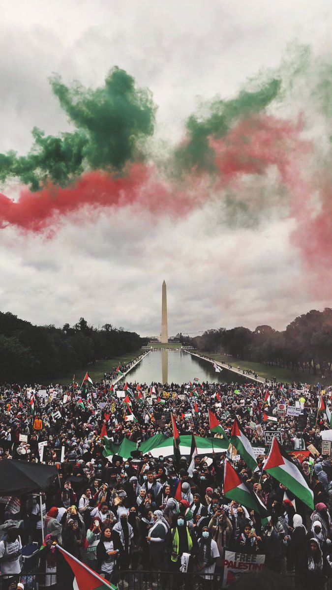 Large rally for Palestine in DC shows broadening support and shifting political landscape in the USA.