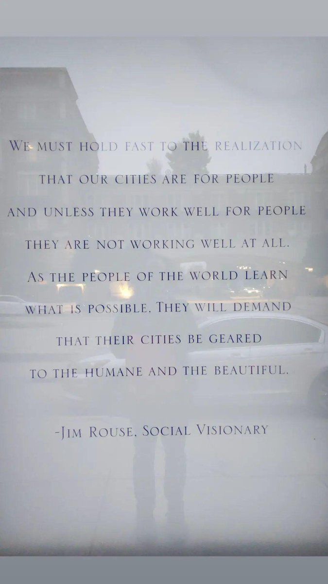 "As the people of the world learn what is possible, they will demand that their cities be geared to the humane and the beautiful." -Jim Rouse