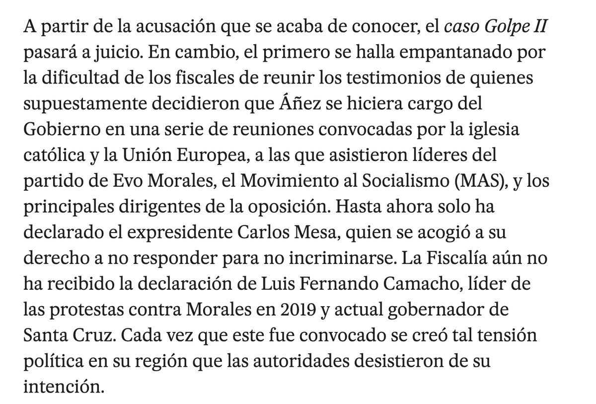 Investigation of Golpe I has stalled with some of the main players stonewalling. Meanwhile the facts of Golpe II are largely public and form the basis of the new formal accusation.