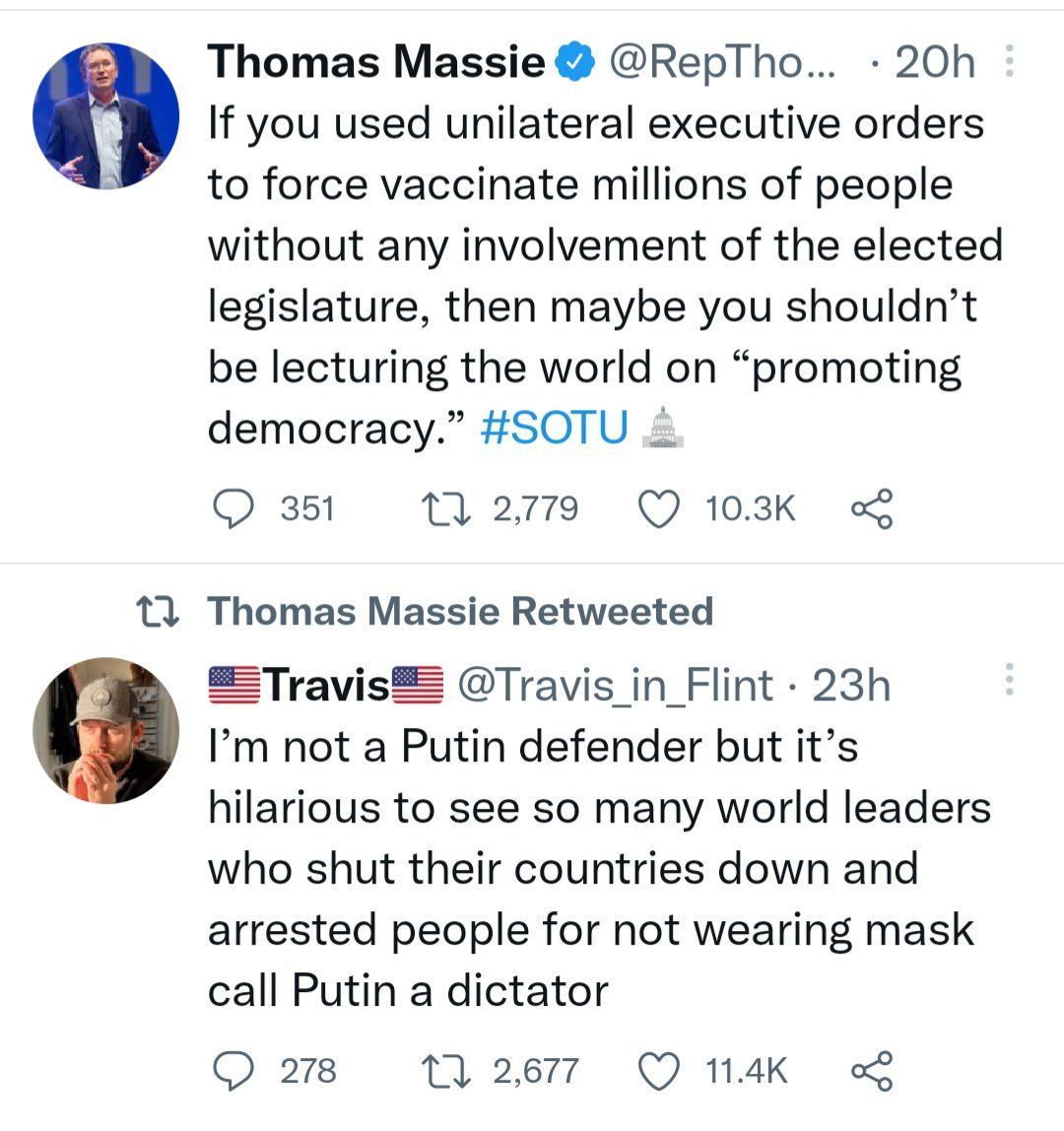 Pro-lynching Congressman* explains that real tyranny is vaccines and masks, not whatever Vladimir Putin is doing. #GOPTraitorsToDemocracy #PutinsGOP