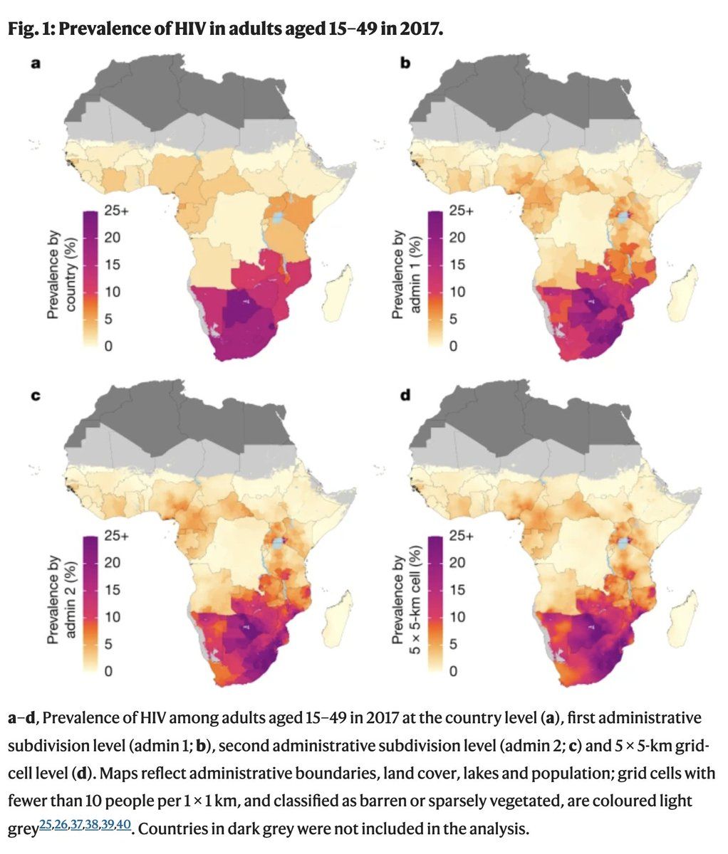 @n_hold @Ethnography911 @GYamey Dwyer-Lindgren, Laura et al. “Mapping HIV Prevalence in Sub-Saharan Africa between 2000 and 2017.” Nature 570, no. 7760 (June 2019): 189–93. doi.org/10.1038/s41586-019-1200-9.