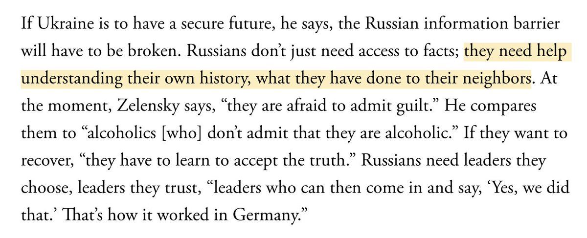 @ksvarnon This resonates with this paraphrase in @TheAtlantic interview with @ZelenskyyUa published today (paraphrased in original): "Russians don’t just need access to facts; they need help understanding their own history, what they have done to their neighbors."