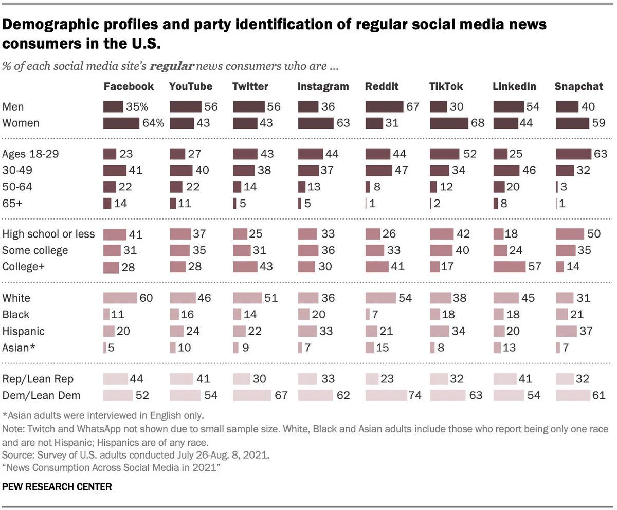 @whstancil Theres data on this, though it takes a minute to avoid over-interpreting it. About 6% of adults got news from TikTok either "often" or "sometimes" in 2021.