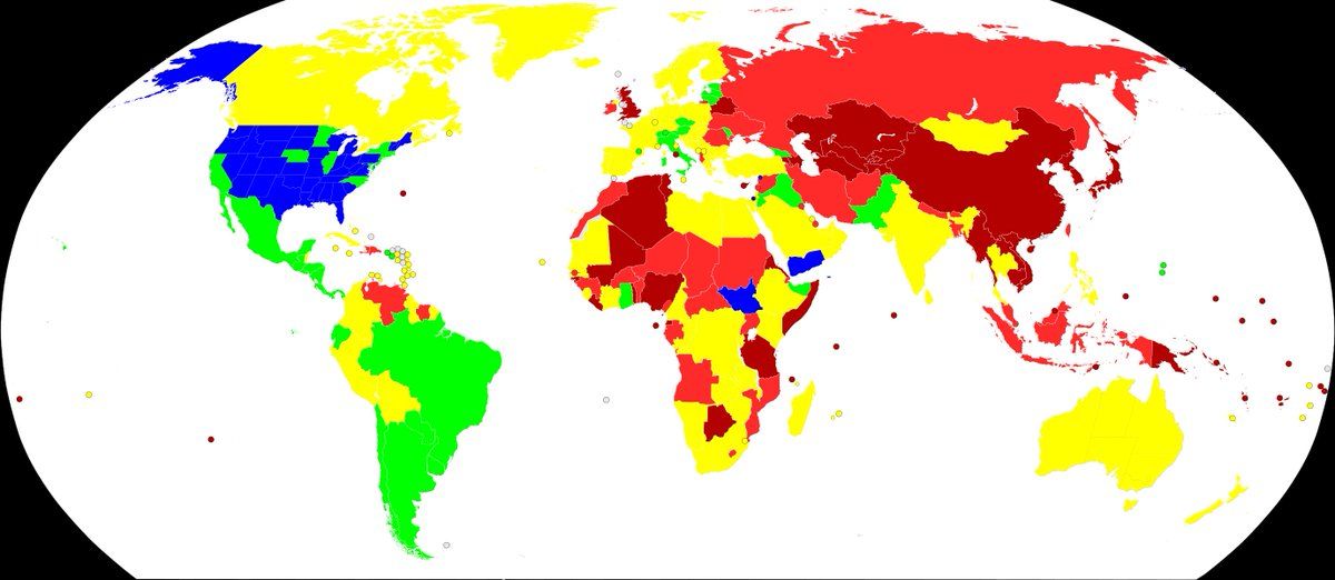 USA gun laws are abnormal in the world. And today's #SCOTUS ruling moves us farther from wise policy. The countries in yellow all have gun laws akin to the law struck down in NY State.