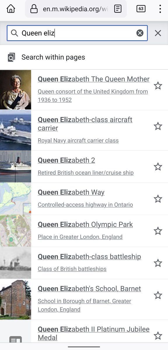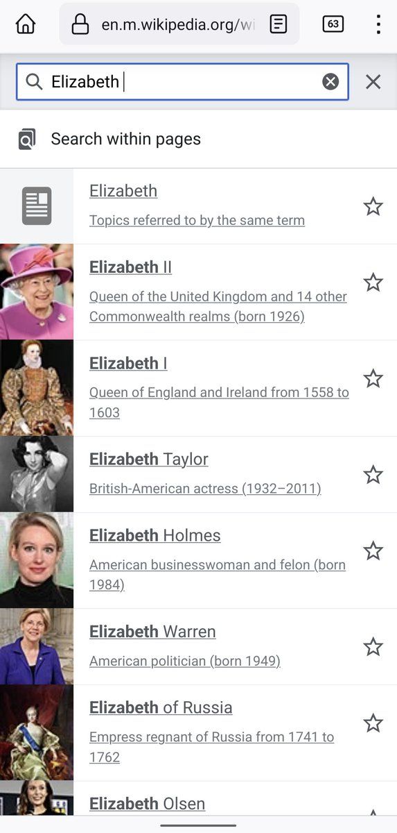 means that "Queen Elizabeth…" doesn't auto-suggest the reigning Monarch. Turns out the encyclopedia lists her under "E"