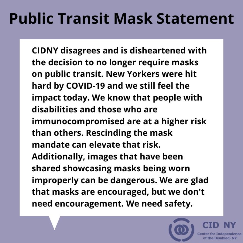 A statement on rescinding the mask mandate on public transit.