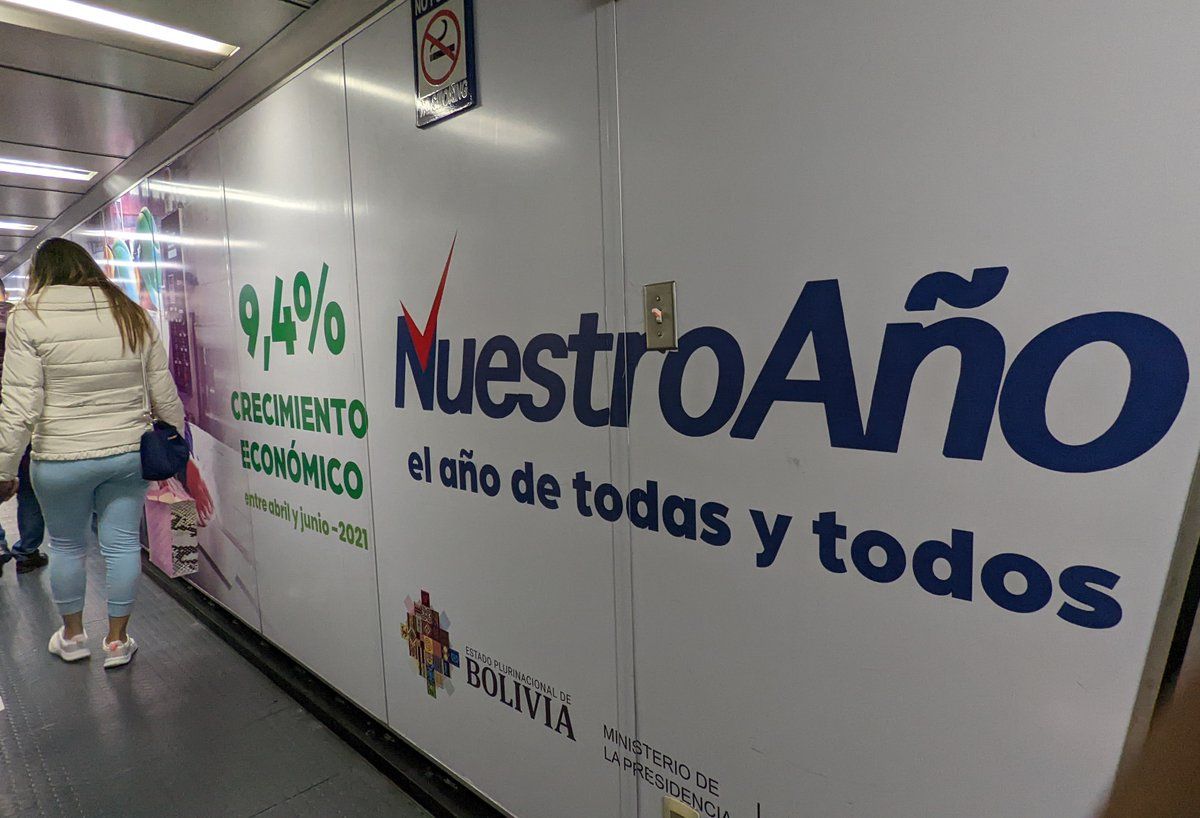 A typical Arce government advertisement touts 9.4% economic growth (post-Áñez and bouncing back from the pandemic) and relatively low inflation.