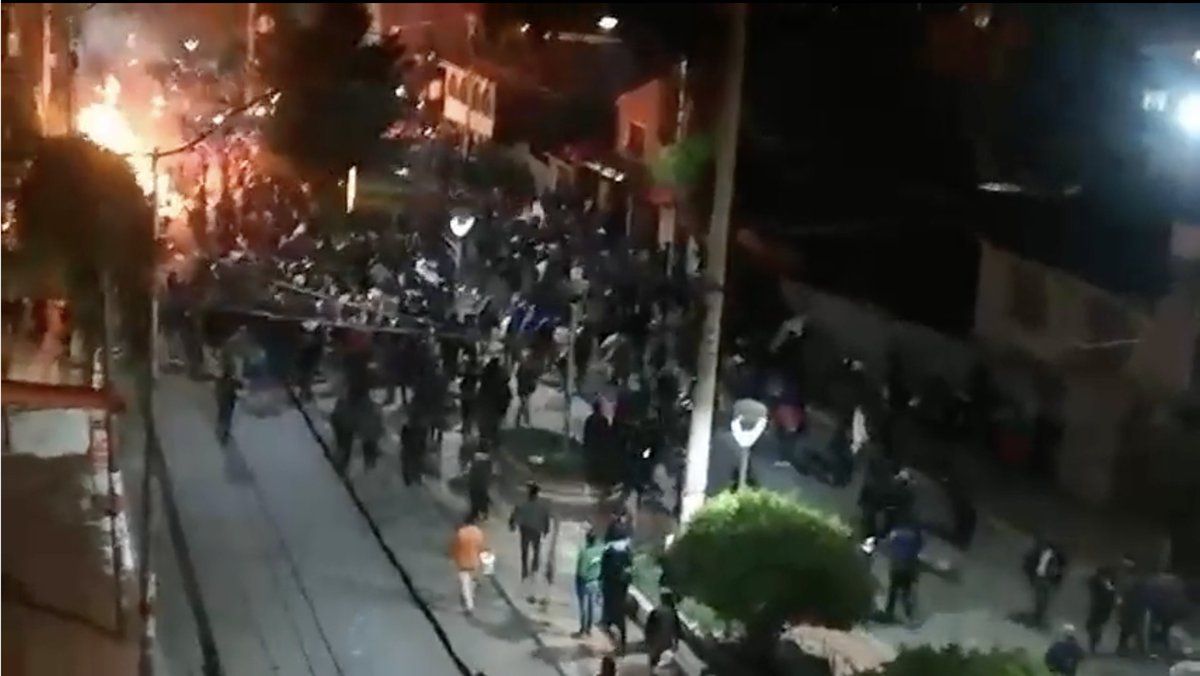 Within minutes of the police pullback protester from the crowd take the block in front of the Tribunal, and lay out bonfires on the street, and begin burning down the Tribunal. Second video: facebook.com/erwin.valda/videos/2505974576165802/