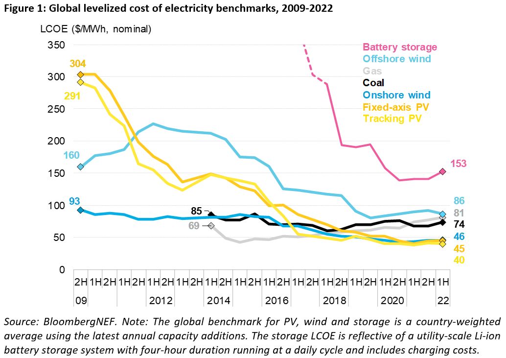 Renewable technologies are benefiting NOW from increases in know-how and the fact that there are many other industries that use silicon, magnets, and motors. Their LCOE has plunged in the past decade.
