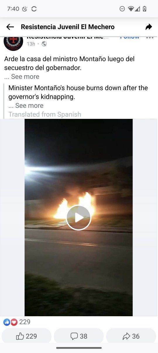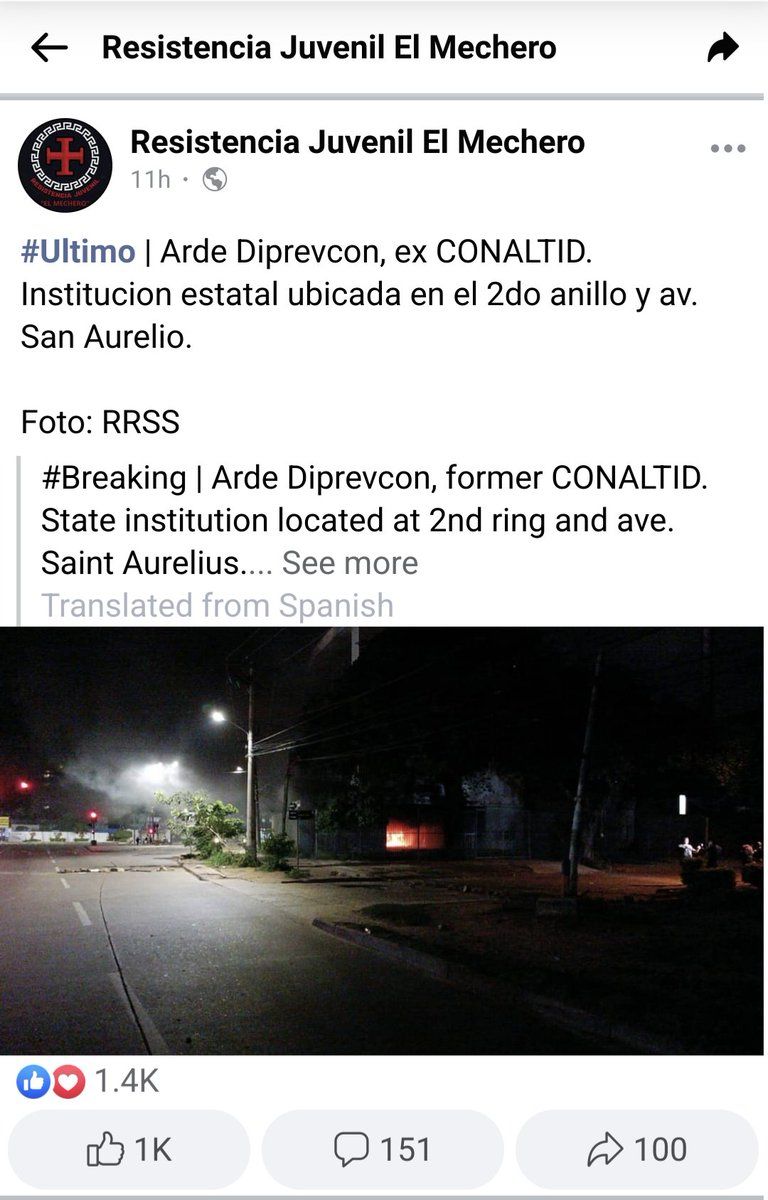 229 likes for the arson of Minister Montaño's house. 1.4k likes for the arson at Diprevcon / former CONALTID.