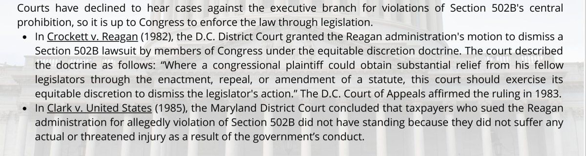 @jeffryhouse @NathanJRobinson Both members of Congress and American citizens have gone to court on this issue and current precedent holds they have no standing to enforce this law. Only Congress, acting through legislation, may do so. civiliansinconflict.org/wp-content/uploads/2022/05/502B-Process-One-Pager-Final.pdf