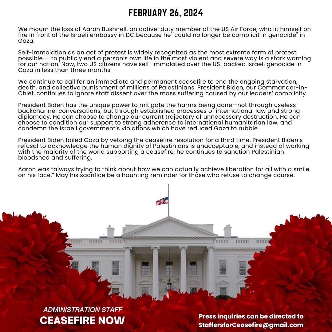 : New: Statement from Biden Admin staff on Aaron Bushnell: