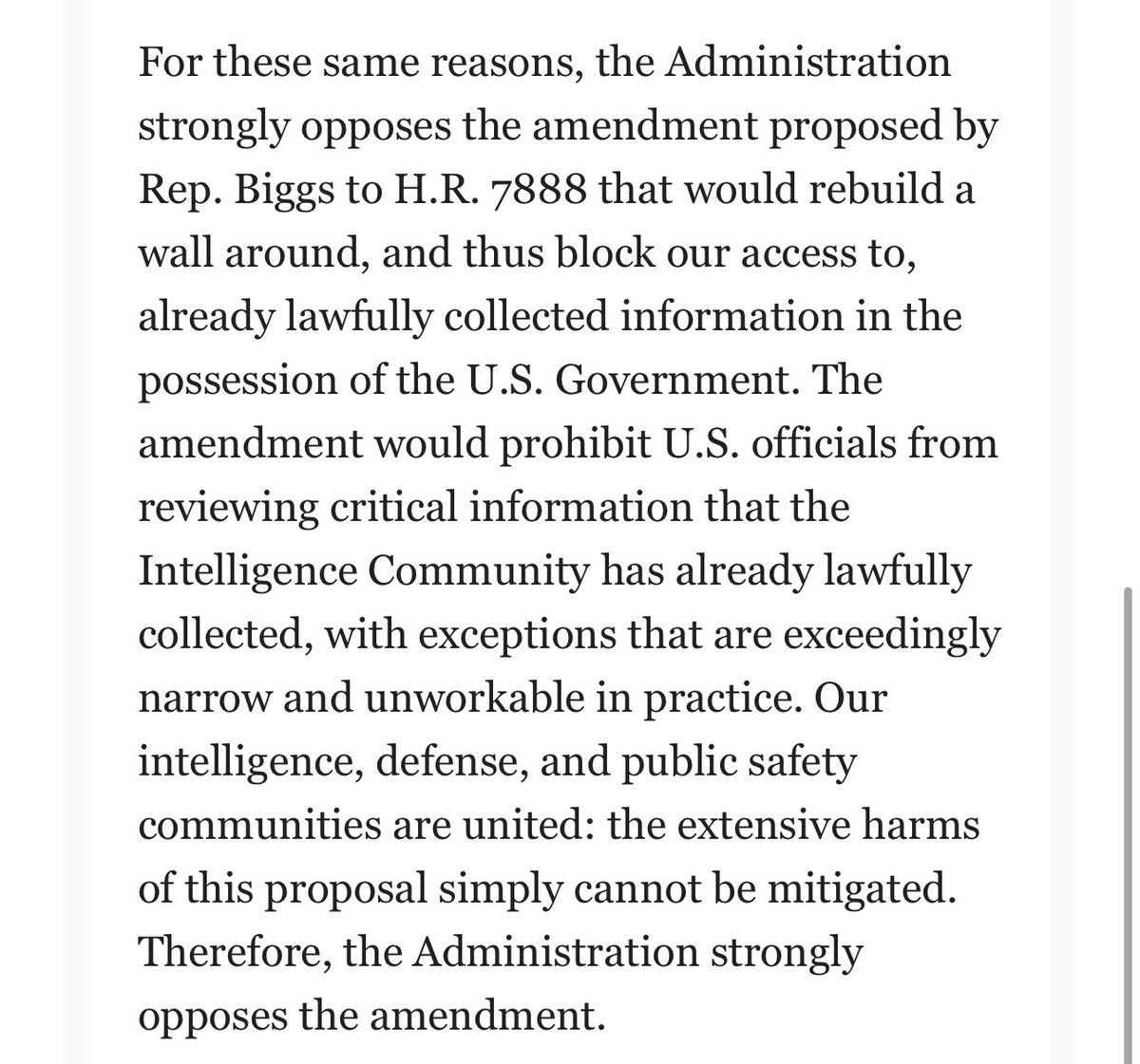 A bipartisan amendment would require warrants for a major form of NSA surveillance. Biden opposes this.