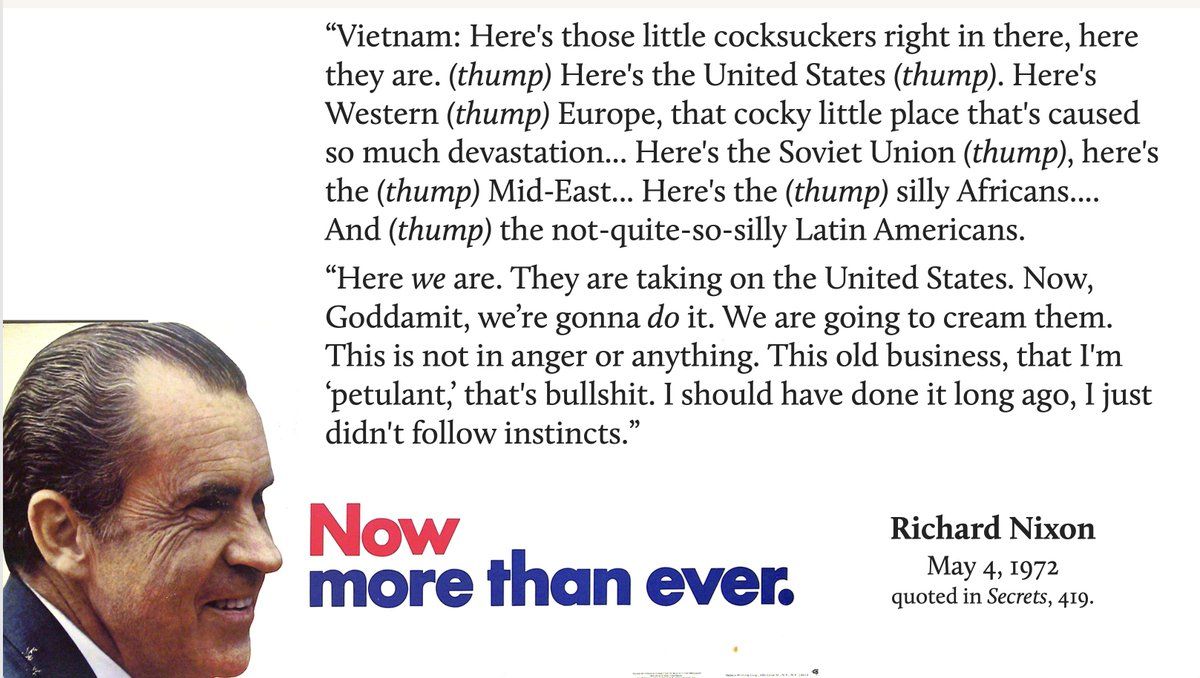 4. If you think a war that's already genocidal "can't get worse," I invite you to learn about the Nixon administration's prosecution of the Vietnam War.