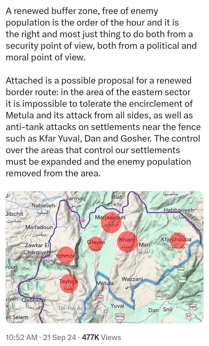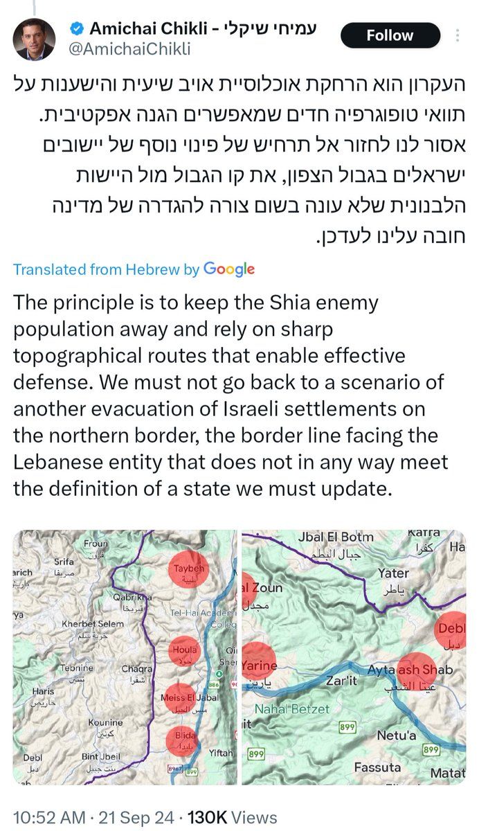 Israeli Minister (of Combating Antisemitism) lays out detailed plan for annexing southern Lebanon "exercising sovereignty" for tactical advantage. Also claims Lebanon, Syria, Iraq are not real states.