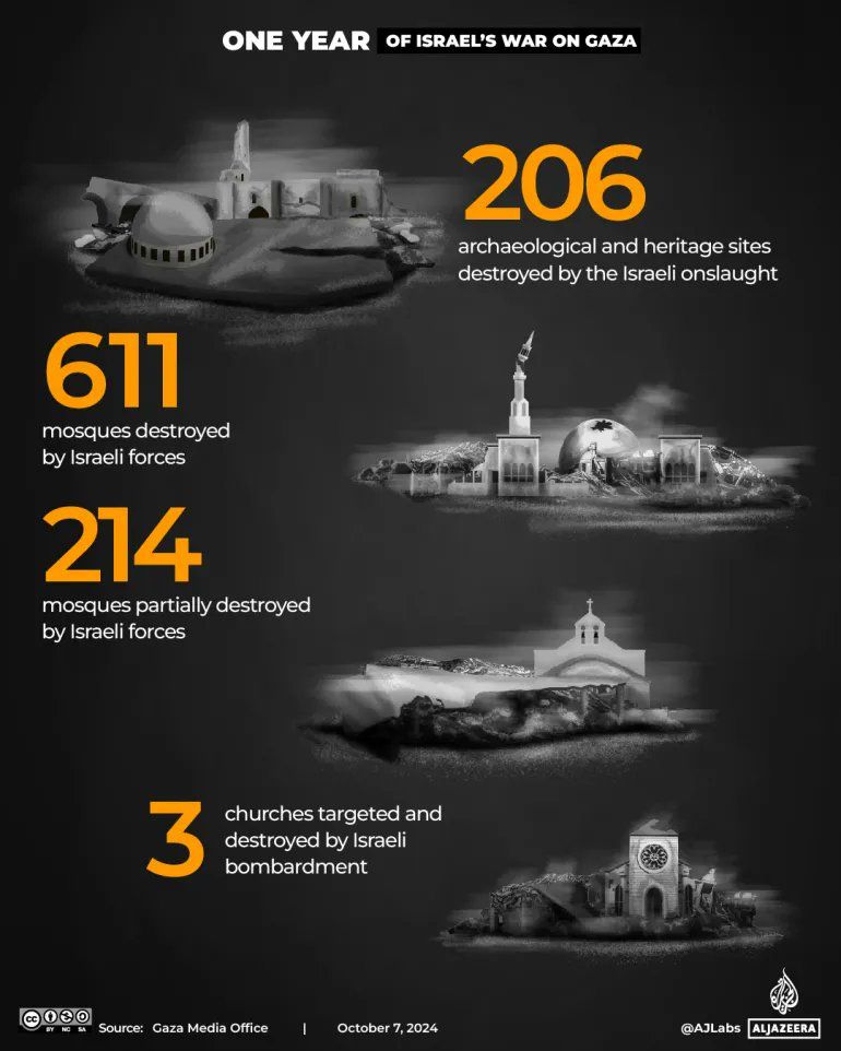 Israel destroyed one mosque every 15 hours in Gaza for a whole year.