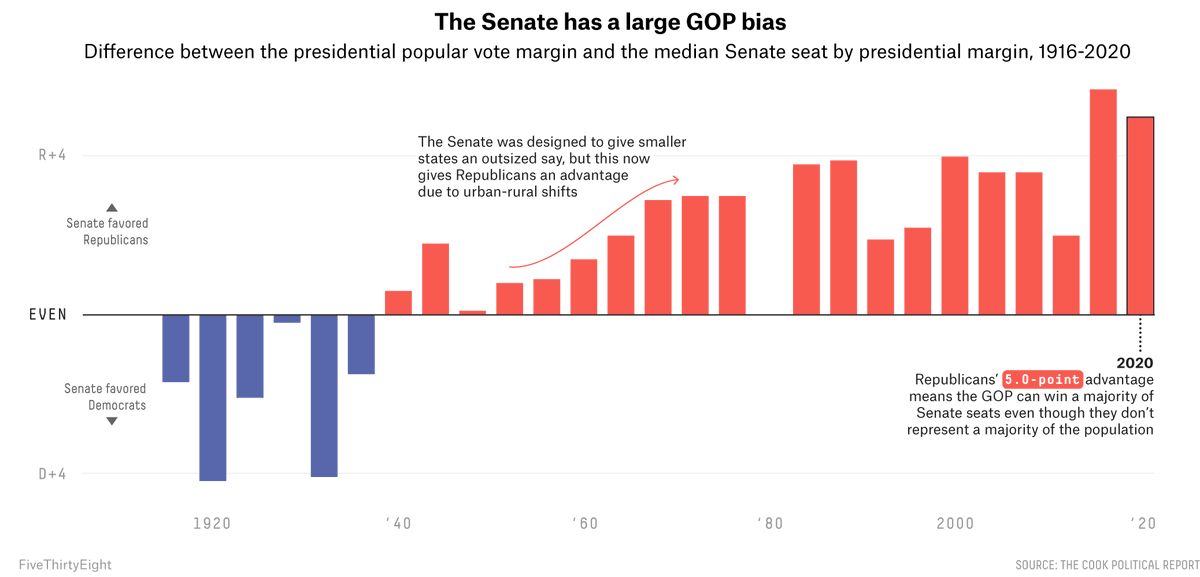 Reminder that the structural bias of the Senate against urban (and therefore Democratic) votes is worse than the Electoral College. So even votes mean a Republican majority. fivethirtyeight.com/features/advantage-gop/