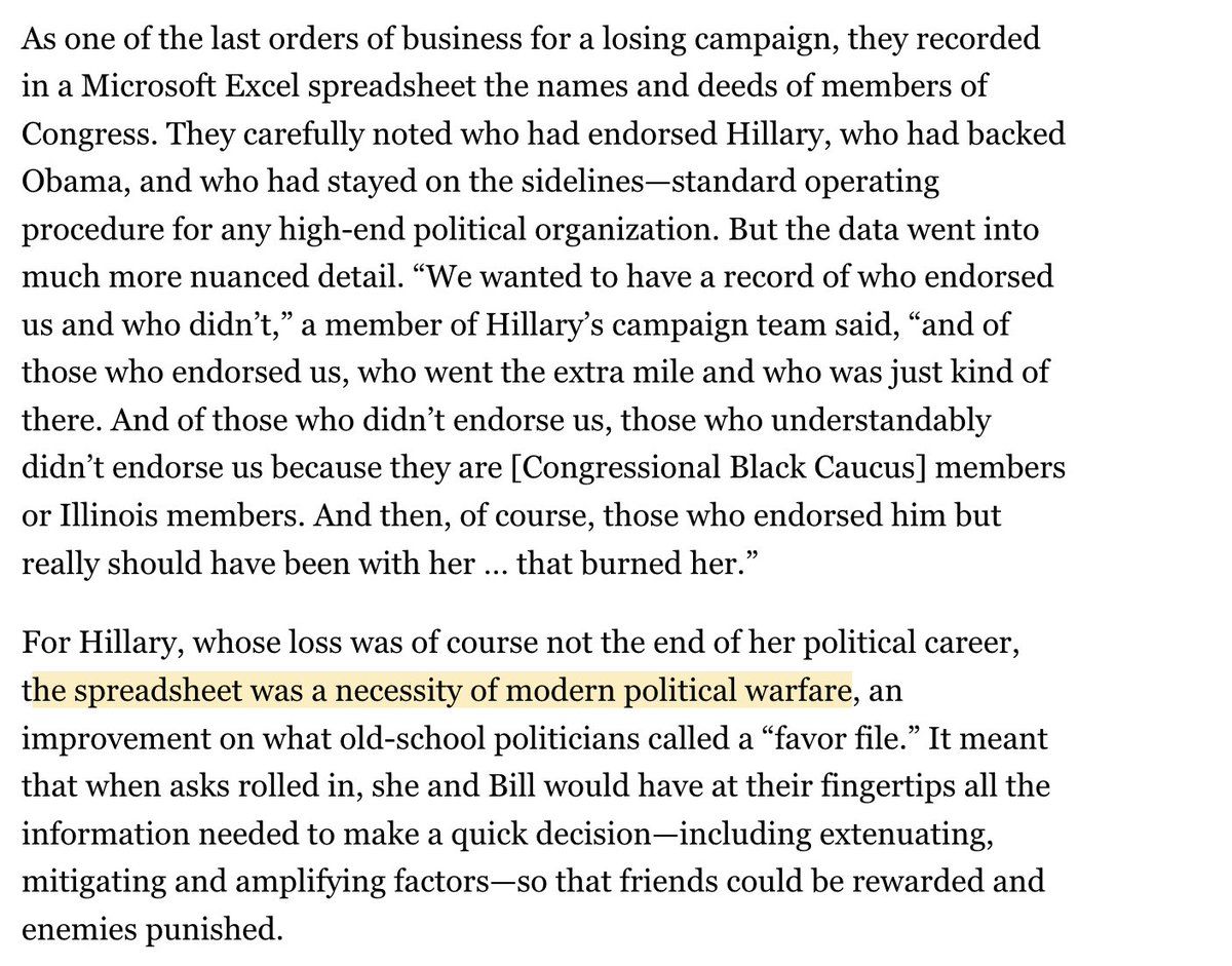 @RVAwonk @mehdirhasan For these authors, "It would be political malpractice for the Clintons not to keep track of their friends and enemies. Politicians do that everywhere."