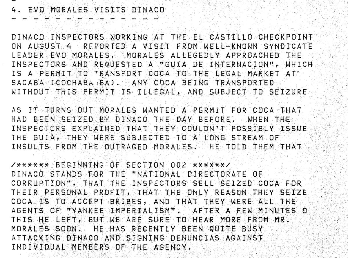 Fairly amazing reference in declassified diplomatic cables from 1992 to a brash young Evo Morales.