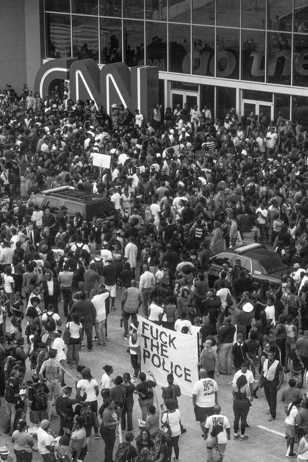 : #CNN failed to mention the large protest at #Ferguson PDHQ 8/18 for #MikeBrown
