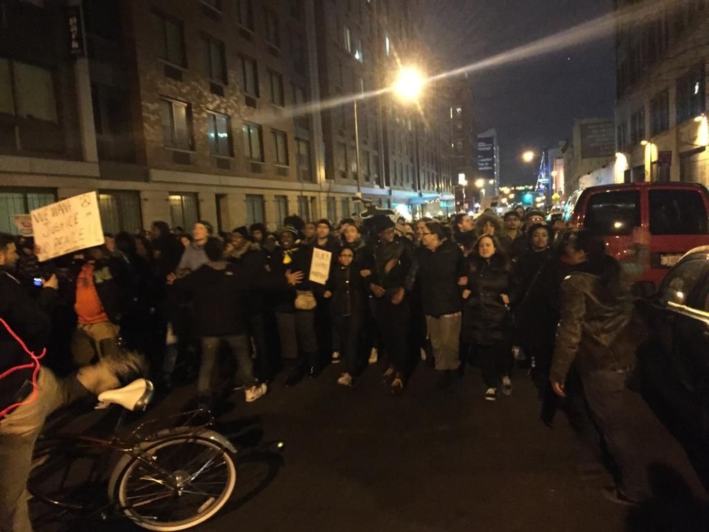 : #EricGarner Protestors approach police blockade with arms linked ”