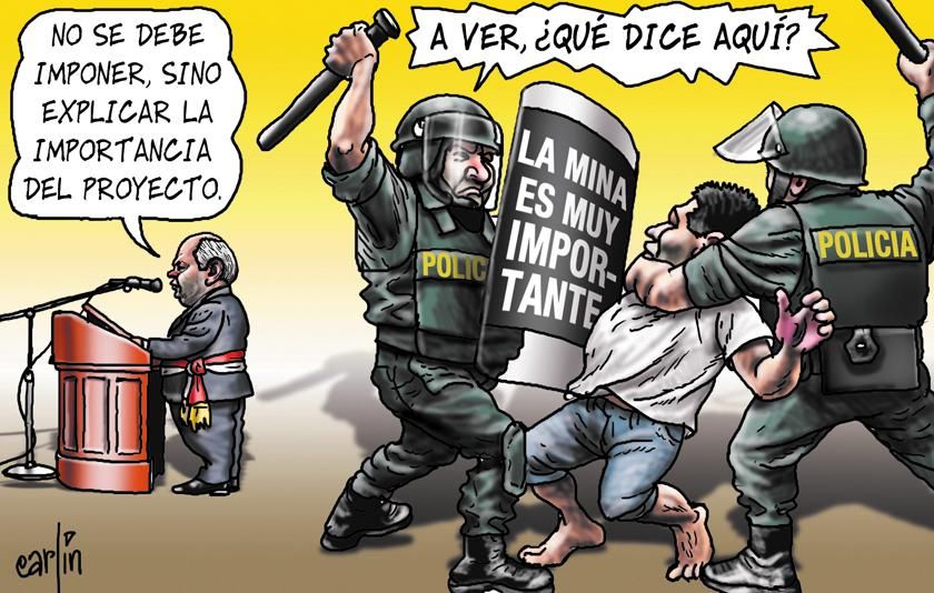 : A quien defiendes soldado, a nuestro Perú explotado o a los dueños de la mina.