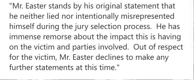 : Statement from attorney for jury foreman in #Vandytrial: