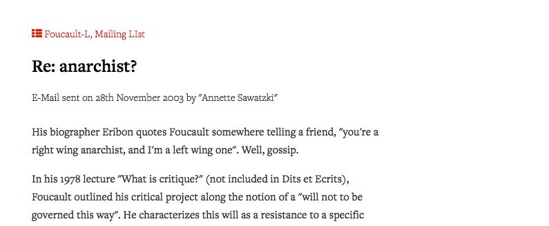 "Re: anarchist" on Foucault-L's gorgeous minimalist website