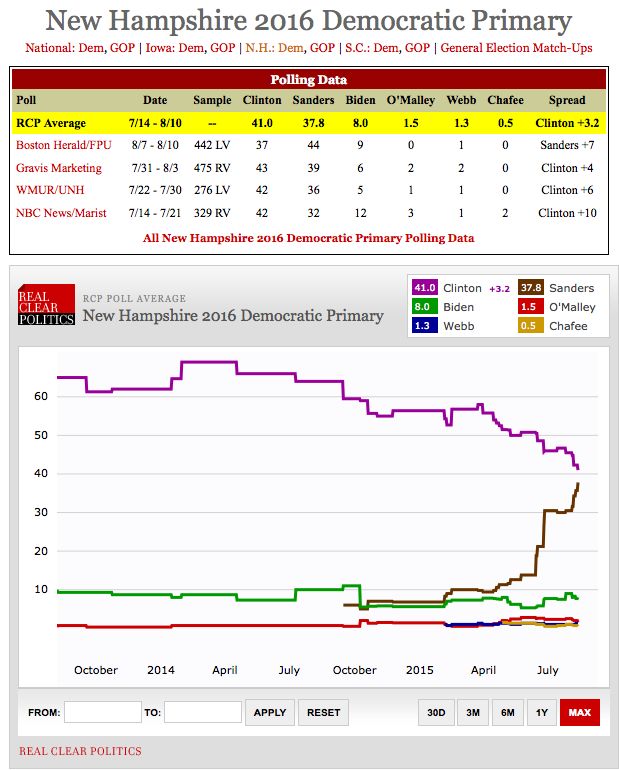 Bernie Sanders on the verge of tipping New Hampshire, leads Clinton in latest poll
